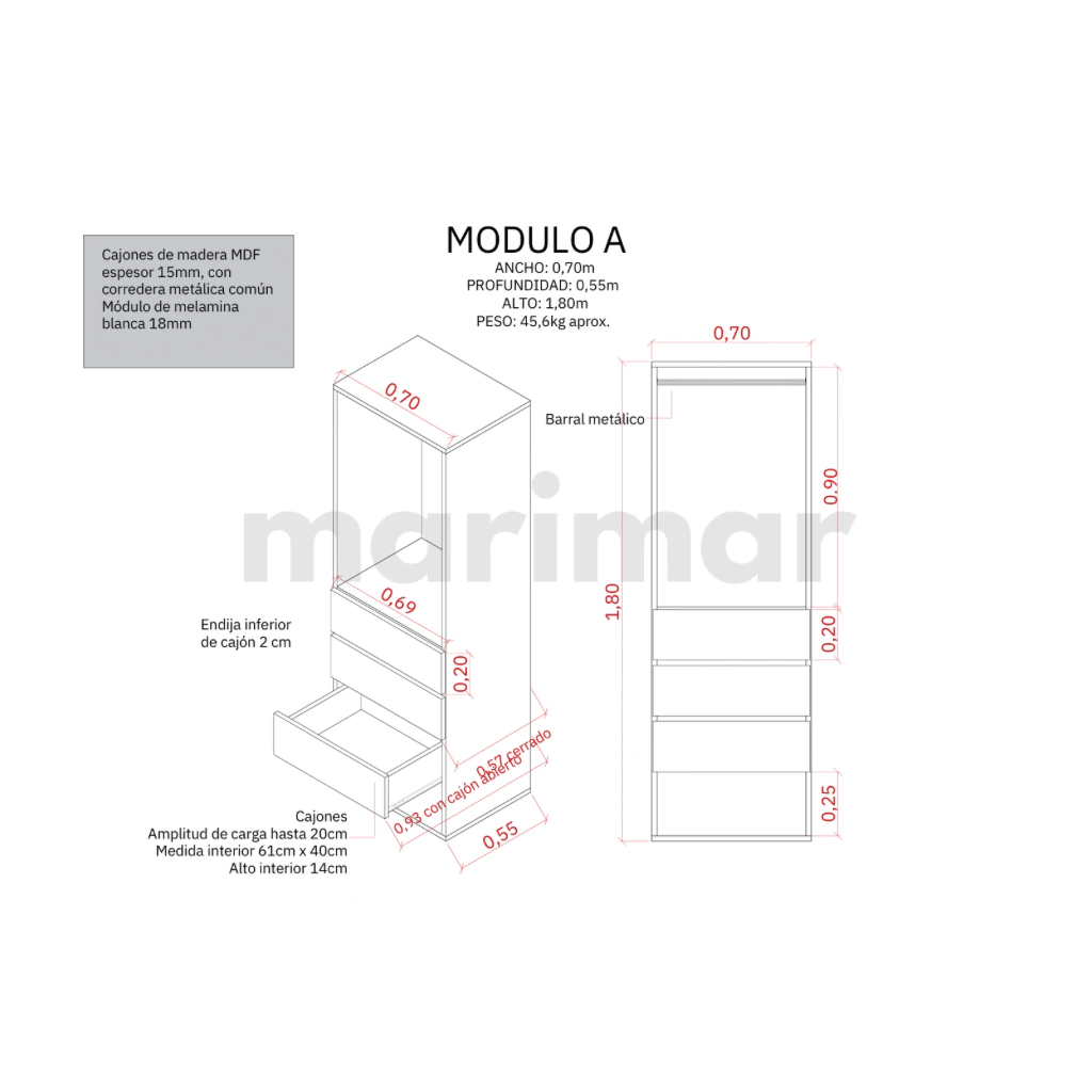 En Marimar, entendemos que cada persona tiene necesidades y gustos únicos cuando se trata de organizar su espacio de vestidor. Es por eso que ofrecemos una amplia variedad de módulos que se pueden mezclar y combinar para crear el armario ideal a medida de cada individuo.
